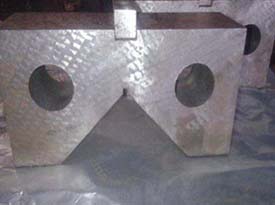 V型架主要用來安放軸,套筒,圓盤等圓形工件,以便找中心線與劃出中心線。一般V型架都是一副兩塊,兩塊的平面與V型槽都是在一次安裝中磨出的。
